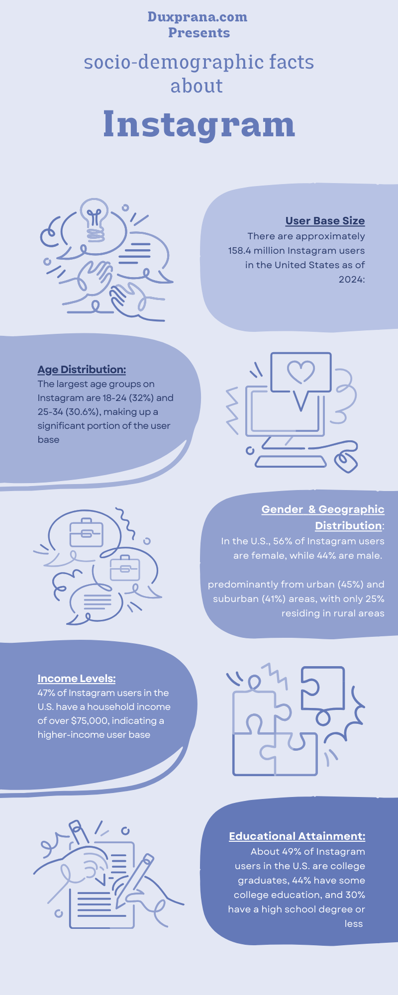 Here are six socio-demographic facts about Instagram users in the United States, along with their sources:
